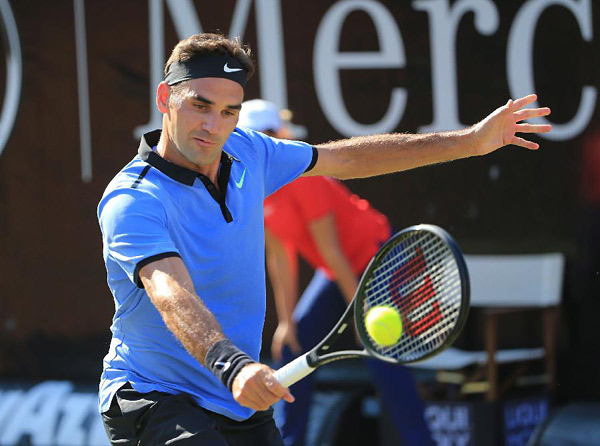 6月14日,瑞士选手费德勒在比赛中回球。当日,在德国斯图加特进行的梅赛德斯杯男子网球公开赛第二轮比赛中,瑞士天王费德勒以1比2不敌德国老将选手哈斯,无缘八强。
