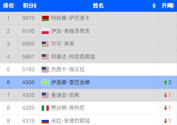 而在东京站1/4决赛中,莱巴金娜2-0击败姆博科,成功晋级四强,本赛季冠军积分达到4350分,正式超越米拉-安德烈娃的4319分,稳居冠军积分榜第六位,成功捉住年终总决赛的最后机会。