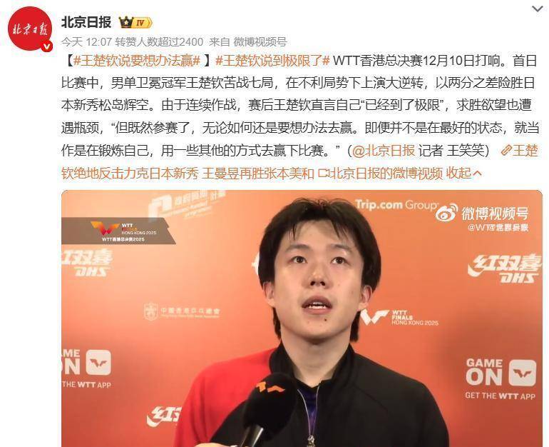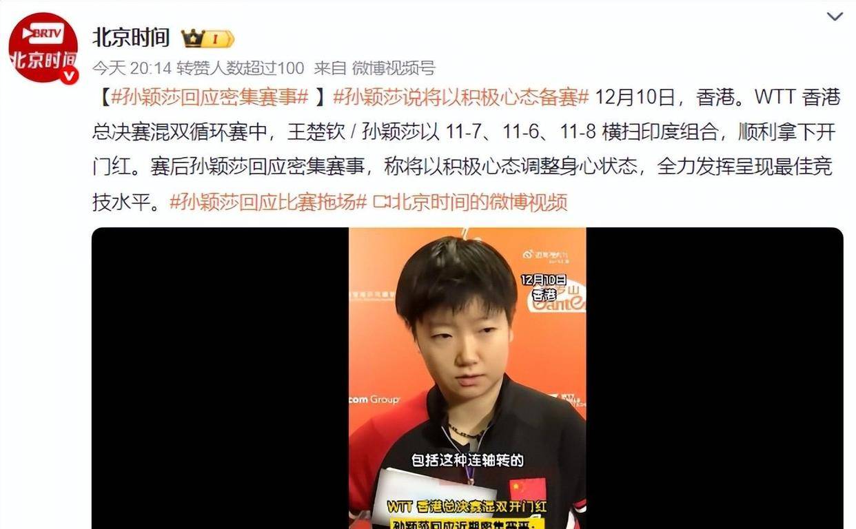 这不是她一个人的困境,王楚钦在苦战后说自己“到了极限”,孙颖莎也承认赛程“连轴转”。